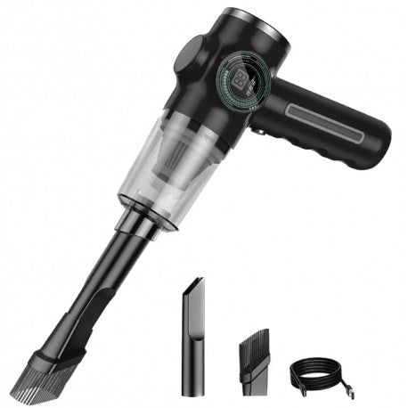 Es 100% inalámbrica y funciona con batería recargable. Ofrece autonomía suficiente para realizar una limpieza completa del coche con una sola carga.